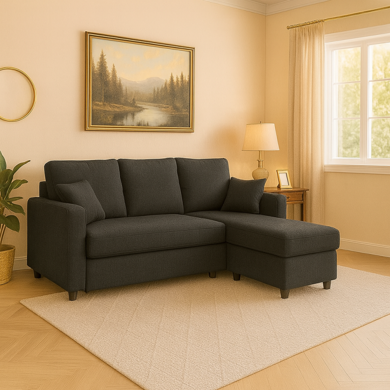 Canapé d’Angle Convertible “CosyDream” – Canapé-Lit avec Coffre – Gris foncé