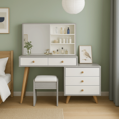 Pour une personnalisation optimale, choisissez parmi notre gamme de couleurs disponibles pour le commode et la chaise, afin de créer un ensemble qui correspond à votre style et à votre décor.