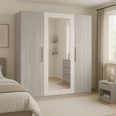Le dressing Maro incarne l'alliance parfaite entre fonctionnalité et esthétique. Avec sa composition polyvalente, il répond à tous vos besoins de rangement avec élégance. Doté de quatre portes, douze étagères et deux barres de penderie, ce dressing offre un espace généreux pour organiser vos vêtements, chaussures et accessoires de manière optimale.
