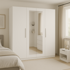 Composition Polyvalente: Quatre portes pour une accessibilité aisée, dix étagères pour un rangement ordonné, et deux barres de penderie pour suspendre vos vêtements avec soin.