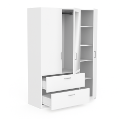 Découvrez l'armoire Neptune, une pièce d'ameublement polyvalente conçue pour répondre à vos besoins de rangement avec élégance et fonctionnalité. Disponible sur commande, cette armoire offre une composition intelligente comprenant 3 portes, 5 étagères, une barre de penderie, deux tiroirs pratiques et un miroir intégré pour plus de praticité au quotidien.