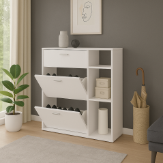 Fabriqué en MDF stratifié d'une épaisseur de 18mm, avec une façade High Gloss, ce porte-chaussures allie solidité et esthétique. De plus, il est disponible dans une gamme de couleurs pour s'adapter à votre style et à votre décor intérieur.