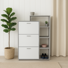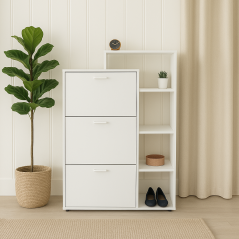 Découvrez notre porte à chaussures Modera², disponible sur commande et conçu pour répondre à vos besoins de rangement. Sa composition polyvalente offre une capacité entre 18 à 20 paires de chaussures grâce à ses trois portes battantes et quatre compartiments de rangement. Avec des dimensions généreuses de L: 90 x H 125 x P 35CM, ce meuble s'adapte facilement à différents espaces. Fabriqué en MDF stratifié d'épaisseur 18mm avec une façade High Gloss, il associe durabilité et style. Personnalisez-le selon vos préférences avec une couleur de votre choix parmi notre gamme disponible. Pour plus de détails ou pour passer commande, contactez notre service commercial au 58 038 220