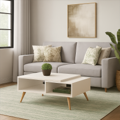 Fabriquée à partir de panneau de particule de haute qualité (16 mm), cette table basse est à la fois solide et légère. Ses pieds en bois de hêtre coniques ajoutent une touche naturelle et élégante à son design, assurant également une stabilité optimale.