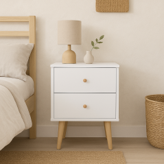 Dotée de deux tiroirs spacieux, cette table de nuit offre un espace de rangement pratique pour vos livres, vos lunettes, ou tout ce dont vous avez besoin à portée de main pendant la nuit.