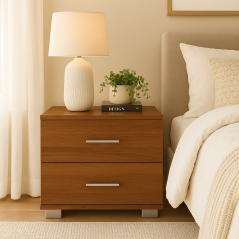 Avec des dimensions de H: 40 x L: 42 x P: 35 cm, cette table de nuit est parfaitement proportionnée pour s'adapter à divers espaces de chambre à coucher. Fabriquée en MDF stratifié de 18 mm, elle garantit durabilité et résistance tout en conservant un aspect élégant.